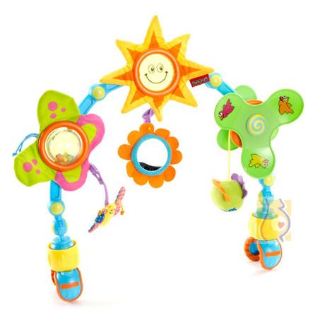В 3 месяца, кроме погремушек очень нравилась дуга от Тини лав, удобно, что ее можно крепить почти ко всему (кроватка, коляска, шезлонг, автокресло)