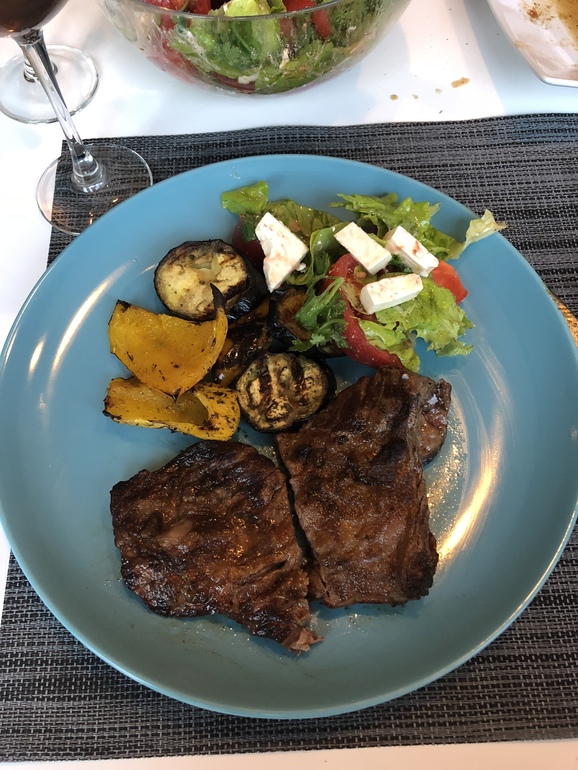 Стейк мачете, овощи, салат