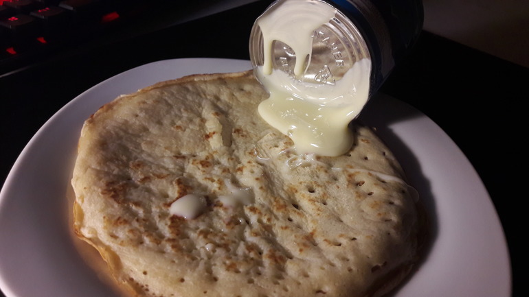 На полдникоужин оладьи со сгущенкой. ммммммммм.