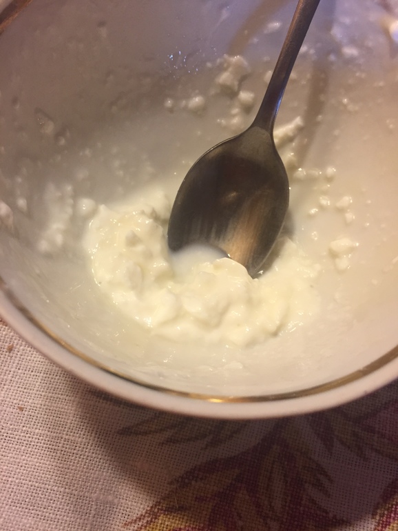 Итого на обед борщ, цветная капуста в панировке. На десерт - наши соседи берут на ферме творог, взяли и на нашу долю. Вкусно - ум отъесть. Но и стоит... еда творог со сметаной и сгущенкой