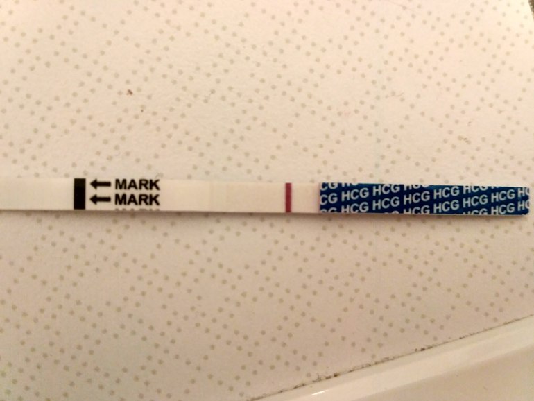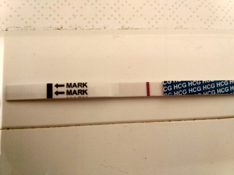 Который проявляется как беременная полоска, но либо серая и тонкая, либо поплывет и т.д.