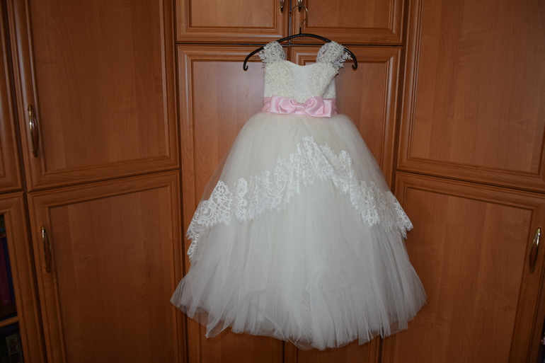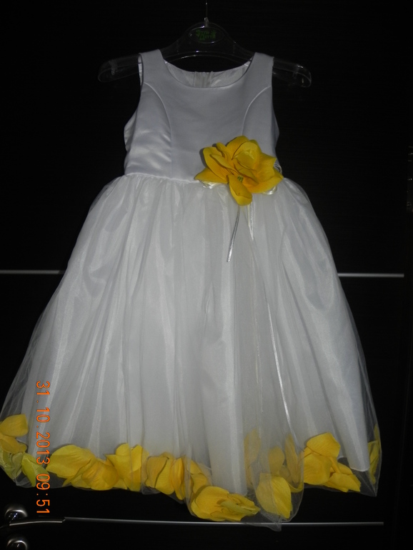Платье просто шикарное, на спине корсет , о.г.31, длина поспинке 83, лямки пришиты только с одной стороны, для удобства, чтобы подогнать непосредственно под ребенка , ооочень пышное, 5 слоев юбок.Подойдет на рост 116-128