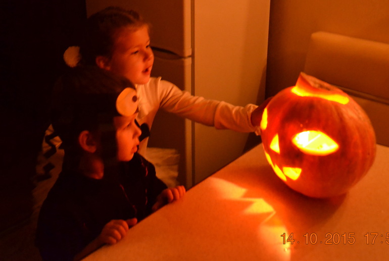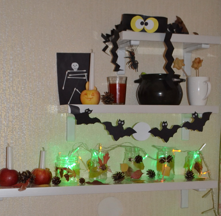 Летучие мыши украли луну, чтобы на Земле ночь была черной, но фонарики помогли найти мышей на чердаке и угощения для детей - тыквенные цукаты.