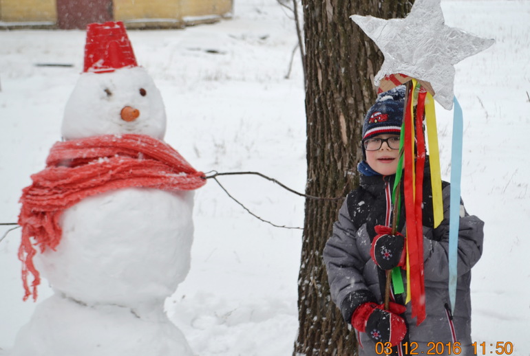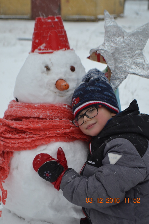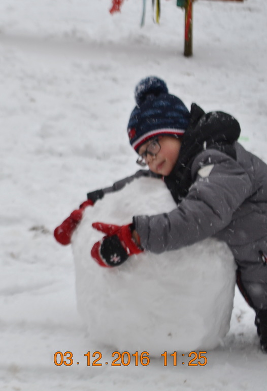 Снеговика огромного слепили. Это посмотрели "Снеговик и снежный пес" и вдохновились.
