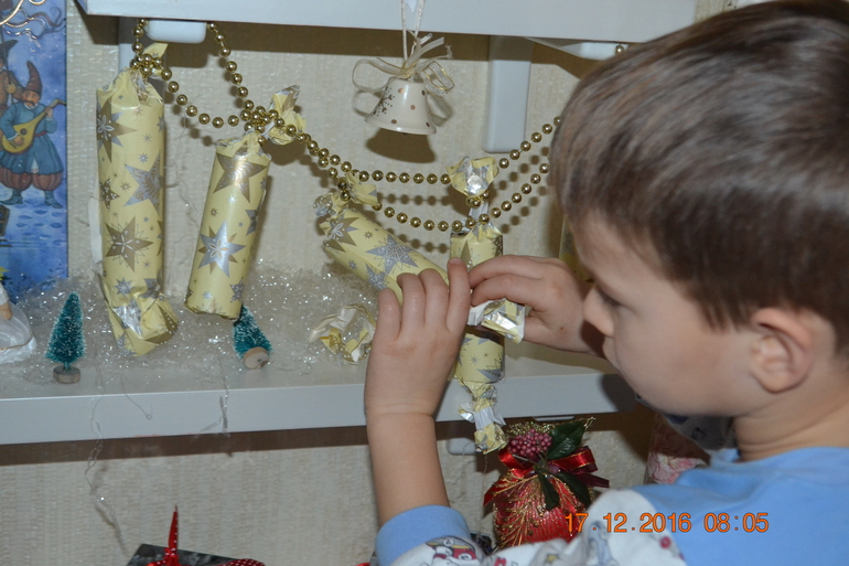 Адвент в этом году у нас длинный, на 3 недели и задания и подарки каждое утро появляются в конфетах - гном приносит.