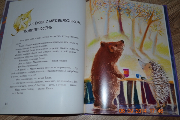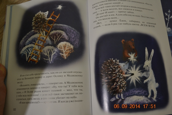 Хочу рассказать о нашей любимой книге с чудесными иллюстрациями, вот сделала несколько фоток наших любимых иллюстраций. Максиму очень нравятся эти рассказы пром ёжика и медвежонка.