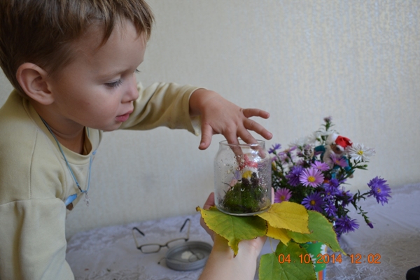 Когда на выходных мы были в лесу, мы с Максимкой собрали немного мха и земли для одной моей давней идеи. Захотелось мне сделать террариум. Это такой маленький кусочек сказки в банке или мини аквариуме...