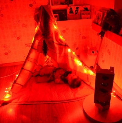 А вчера я соорудила 2 вигвама из огромных палок, поставила их в разных концах комнаты и мы были готовы к игре!