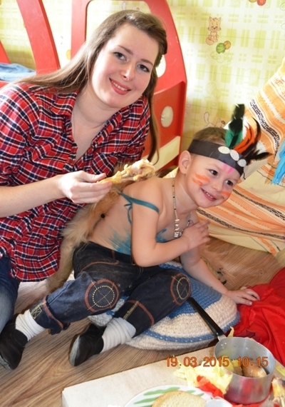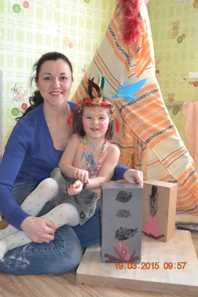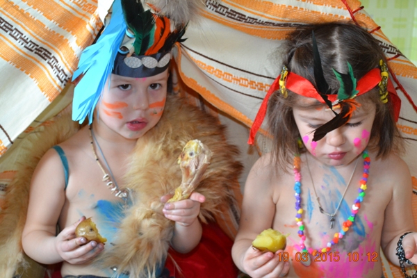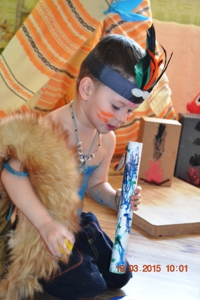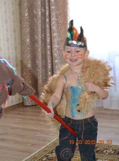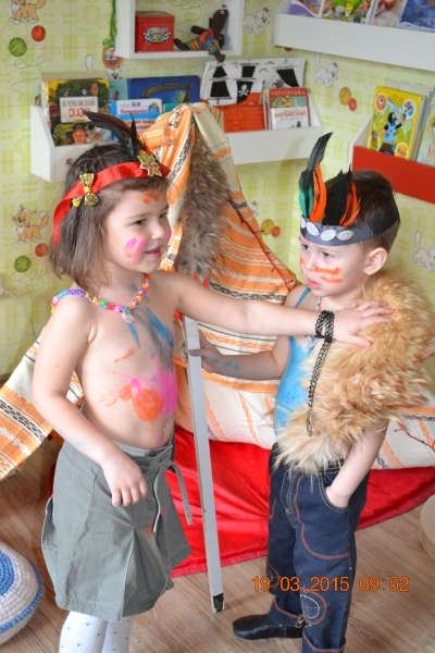 Вначале несколько раз мы смотрели мульты про индейцев и обсуждали детали, так, что ко времени игры дети уже знали кто такие индейцы, а Максим всю неделю испускал крик "команчи".