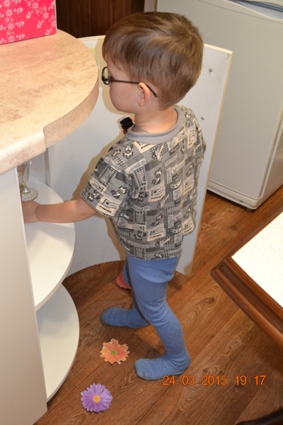 А потом увидел цветочки возле кухонных шкафов и нашел заготовки для аппликаций. Два воробушка Чик и Чирик.