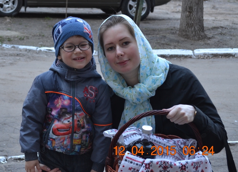Максим очень впечатлился историей Иисуса Христа, потом долго объяснял папе об убийстве и чудесном воскрешении Христа. С удовольствием "христосался" и целовался с друзьями.