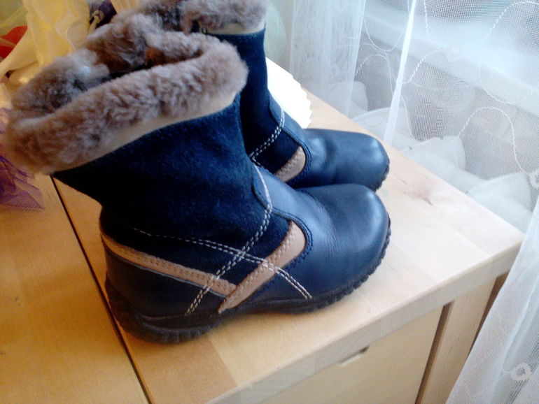1 Сапожки синие кожа-нубук-мех . Чуть задаёт носок. Мех на 5+. Стелька 15-15,5 500р.