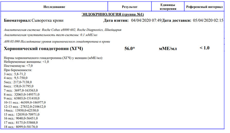 Есть, у вас хгч 56. По значениям лабы 3 недели у вас. Сдавайте в динамике еще пару раз, каждые 2 дня) если хорошо растет, неделями к 7 акушерская, а лучше в 7 и идите на УЗИ, услышат сердечки, идите в ЖК на учет становиться
