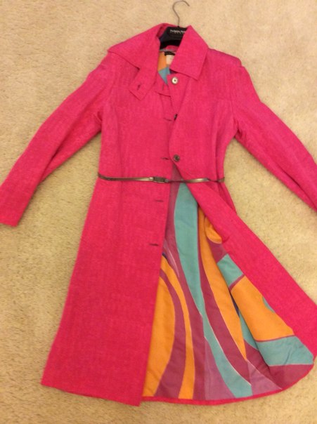 легкое пальто очень красивого насыщенного розового цвета с ярким подкладом . фирма IMMAGI И СЕРЕБРЯНЫМ РЕМЕШКОМ 3000 РУБ