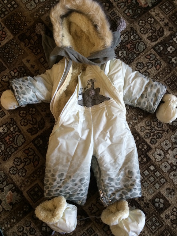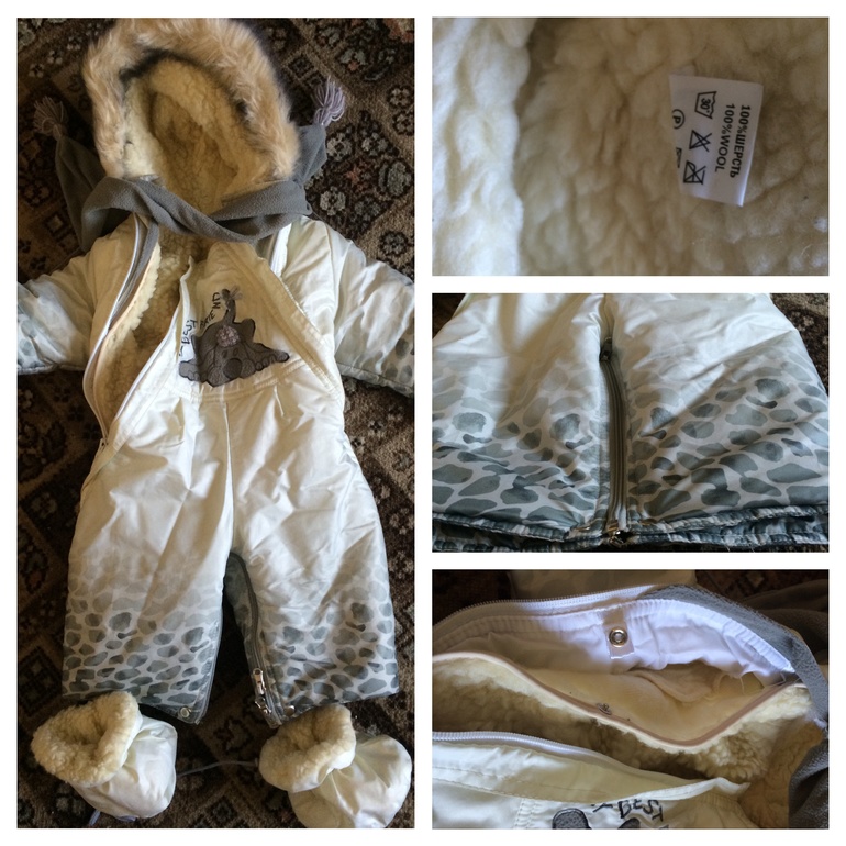 Очень теплый и красивый, носили в -30! В комплекте пинетки и рукавички!