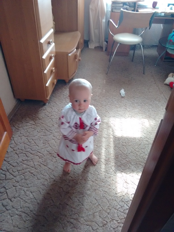 Купили на Андреевском спуске первую вышиваночку. Изначально я сама планировала вышить и даже начала, но с Машиными темпами роста и моим лимитированным свободным временем все же решила купить, а то человек растет быстрее,чем я рукав вышила :) Эта хоть и не вышита мамой, за то куплена от всей души и на исторической родине. Фотосессию мы планируем на день рождения, а пока что небольшой "анонс" . Прошу прощения за размытое фото, но поймать бегающую Машу ой как непросто :)