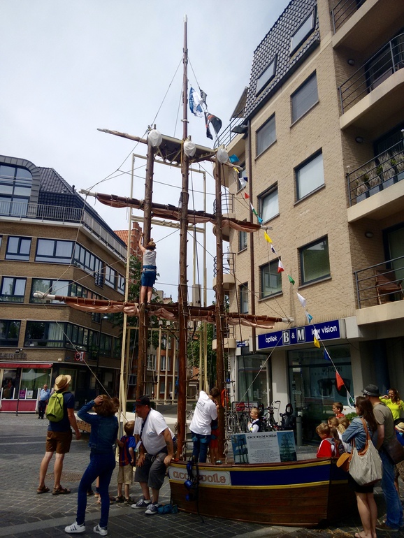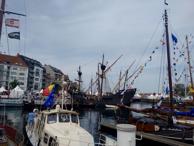 Изначальный план был провести чисто пляжный отдых втроем, но, видать, не такие мы люди, что бы спокойно проваляться все время на песочке у моря ;) Сразу на выходе со здания вокзала Остенд встретил нас неожиданно многолюдным старым портом и площадью перед ним - сами того не подозревая мы попали на последний день одного из самых крупных ежегодных морских фестивалей в Бельгии - Oostende Voor Anker . Тематика мероприятия всегда морская, но каждый год имеет свою специфику. В этом году экспозиция была посвящена inland waterways transport (я не знаю короткого корректного перевода этого на русский) и на эти 3 дня в Остенде собрались более 150 разнообразных яхт и судов, в том числе и старинных парусных.