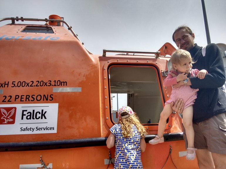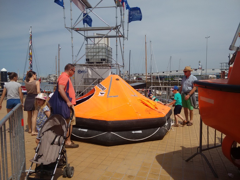 Рядом расположились современные спасательные плоты - настоящий рай для детей и взрослых, так как внутрь можно было не только заглянуть, но и залезть.