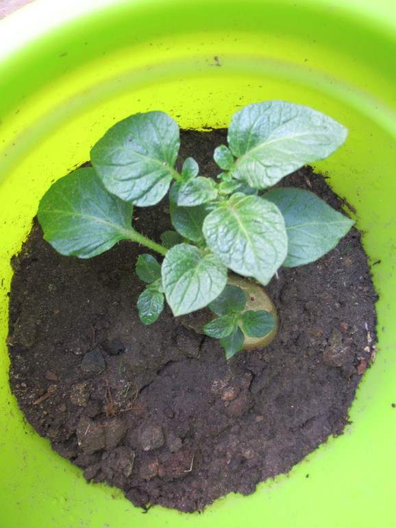 В нашем мини-огороде не обошлось даже без куста картошки. Ну не смогли мы с Машей выкинуть проросшую картофелину