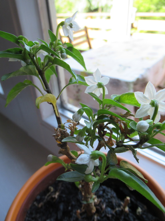 Дедушка-сосед подарил нам растение перца чилли,которое начало активно цвести. Маша с нетерпением ждет появления красных перчиков,а сам факт цветения разных овощей стал отличным поводом для разговоров на тему опыления и его видов, а так же формирования завязей.