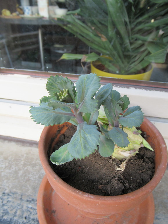 В холодильнике неожиданно выпустил почки качан капусты и мы его посадили. Отличный момент для обсуждения,что капуста -это двухдетник и если проростить качан,то можно получить цветение и семена :)
