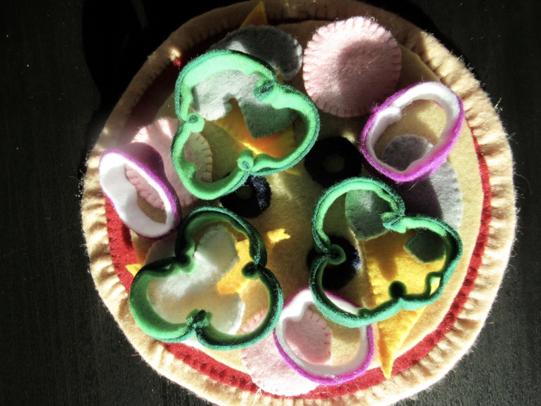 Во время нашей последней поездки в Technopolis мы подсмотрели там отличную идею по "приготовлению" пиццы из фетровых компонентов, а поискав дома в интернете вдохновения я убедилась, что идея хоть и не нова, но имеет массу интересных вариантов для реализации. И хотя пакет разноцветного фетра был заказан практически сразу, до исполнения дело дошло только к новому году. Так что, если вы не знаете, чем себя занять на новогодние праздники - поступите как я, пошейте пиццу из фетра. Это отличный способ прокрастинации 1 января и дети будут счастливы :)