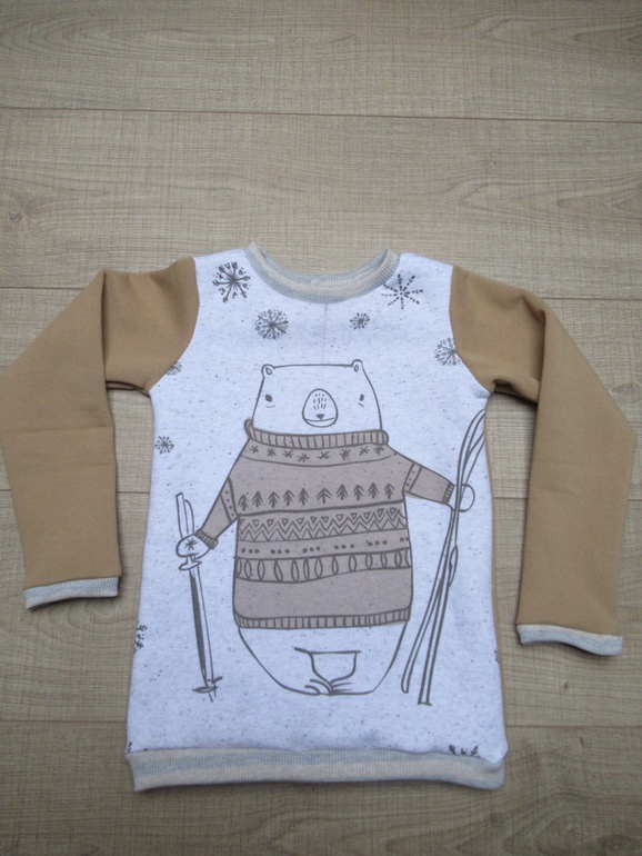 Есть у нас хорошая традиция - "мамин вечер", который случается каждую среду и дает мне несколько часов лично моего времени. На этой неделе дело вылилось вот в такой свитшот для Ани. Фото с пылу, с жару, даже разметка спереди еще видна.
