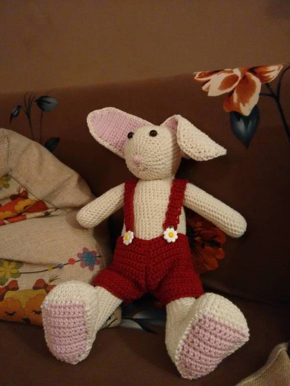 Знакомьтесь, это - Зайка,связанная крючком по заказу Маши из старого немецкого журнала :)