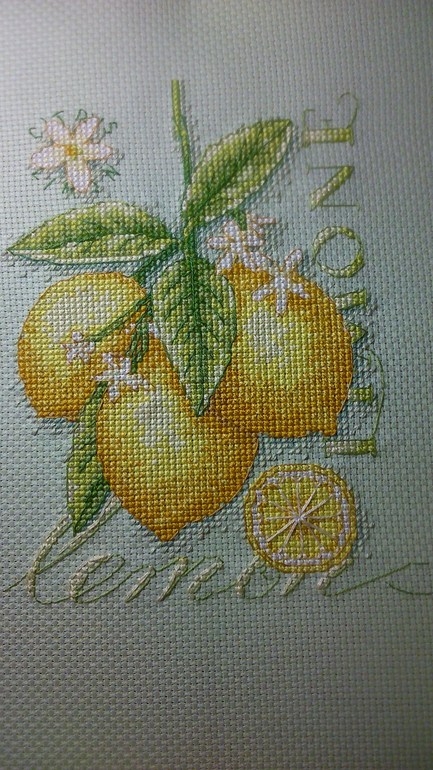 Всем добрейшего солнечного майского утра!!! Хочу представить вам свою новую работу, сочные лимончики от Dimensions. Вышивала с превеликим удовольствием, канва хорошая, ниточки красочные!!! Бэка как всегда много, но я начинаю к нему привыкать ( не люблю бэк!). Правда еще нужно дошить фрузелы, но я их так и не научилась делать((((