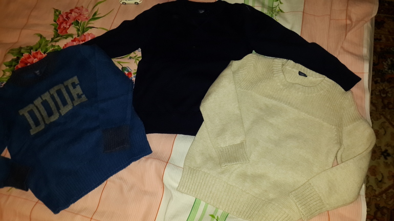 Это результат шоппинга: теплые джемперочки для сынулика из GAP. Обошли кучу магазинов, нашли то, что искали только там.