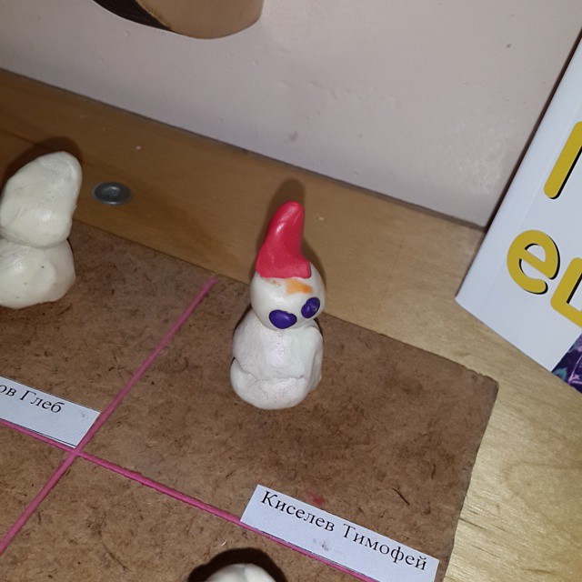 Нашла в телефоне Тимину садовскую поделочку. Снеговик. ))