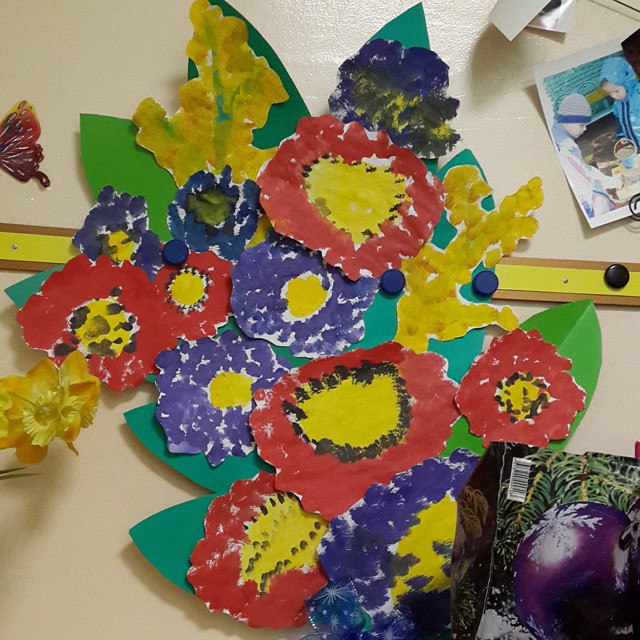 Это коллективная работа деток из нашей группы. Отгадайте, какой цветочек нарисовал Тим?! )))