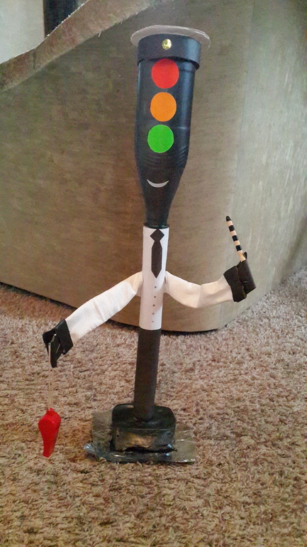 Так это назвали в детском саду и велели к понедельнику сделать и принести светофор в любом виде, кроме рисунка и аппликации. Вот, что у нас получилось.