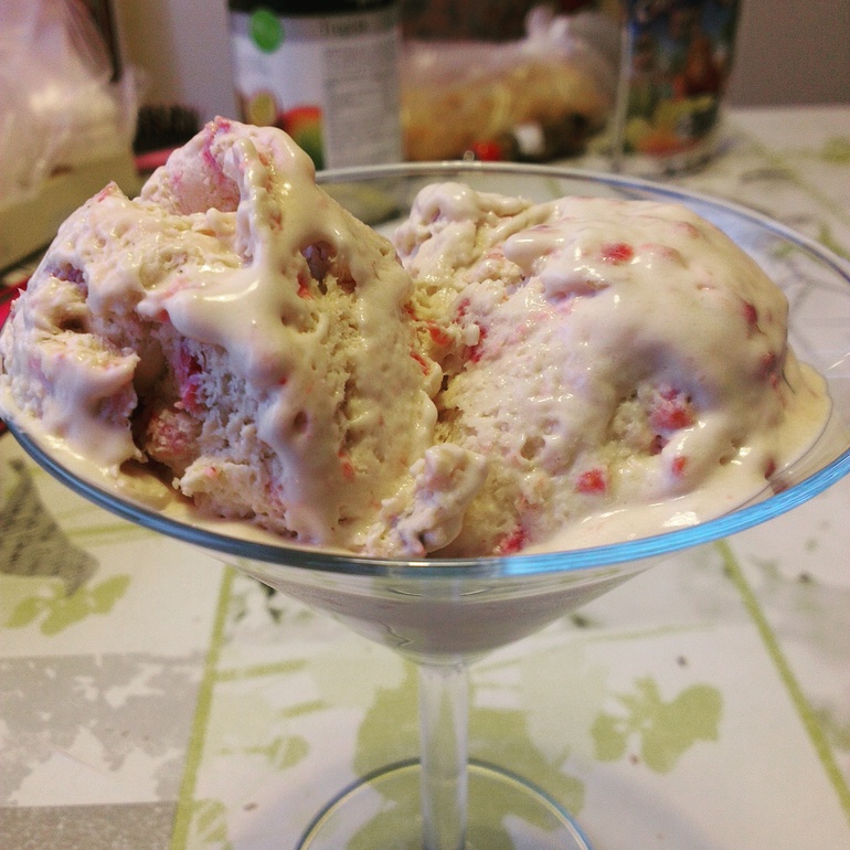После приготовления торта остались желтки и взбитые сливки. Очень удачно попался рецепт в кулинарном. Приготовила мороженое. На желтках первый раз готовила, понравилось очень. Нежно и вкусно. Сливки были с пудрой, поэтому добавила кисленькой малины. Вкусно. Рекомендую. Если мешают малиновые зернышки, можно протереть малину предварительно и в мороженое добавить малиновое пюре.