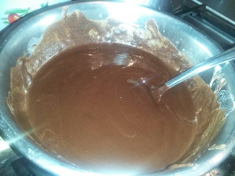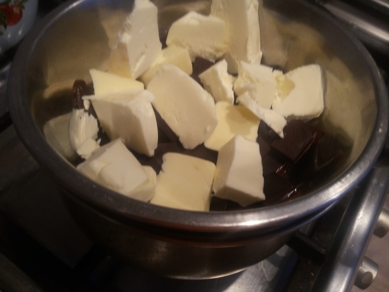 Растопить на водяной бане 200 г шоколада 60% с 120 г сл.масла: