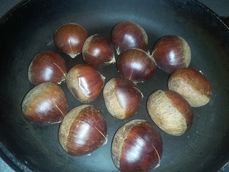 200 г каштанов крестообразно надрезать: