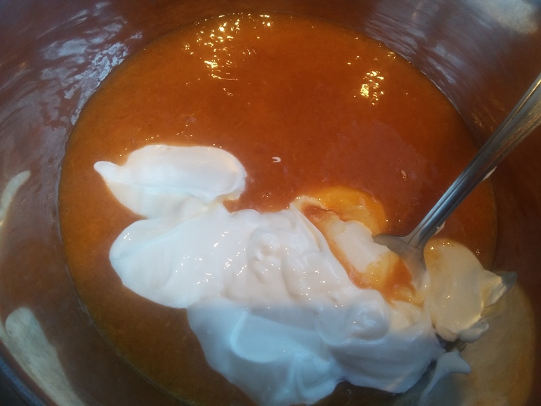 Разбить до пюреобразности. Добавить 6 ст.л. сметаны: