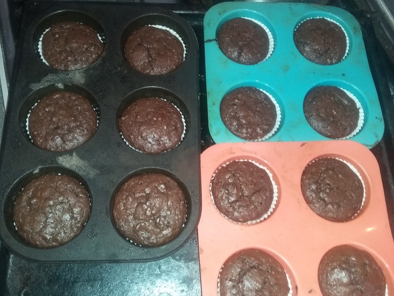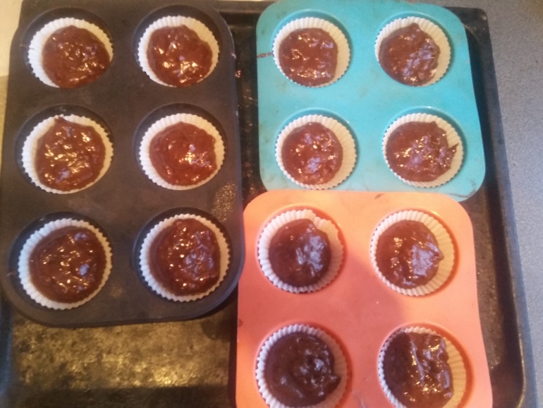 Выкладываем кексы в формочки и ставим на противень в разогретую духовку до 180гр на 10-15 мин.