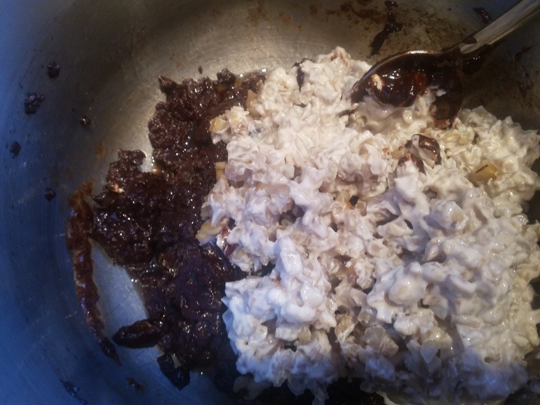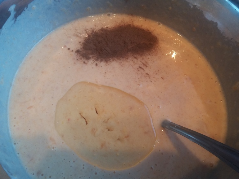 Добавить 1 ч.л. корицы и 100 мл. растительного масла: