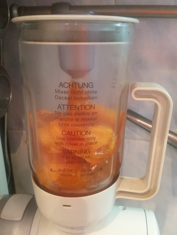 Хурму (4 шт) промыть, удалить плодоножку, снять кожицу, поместить в блендер: