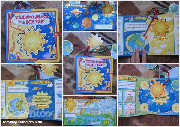 Эта книга рассказывает нам почему наступает день и ночь, почему летом жарко, а зимой холодно, как путешествует водичка и т.д А фигурки на ленточках помогают все наглядно представить)))