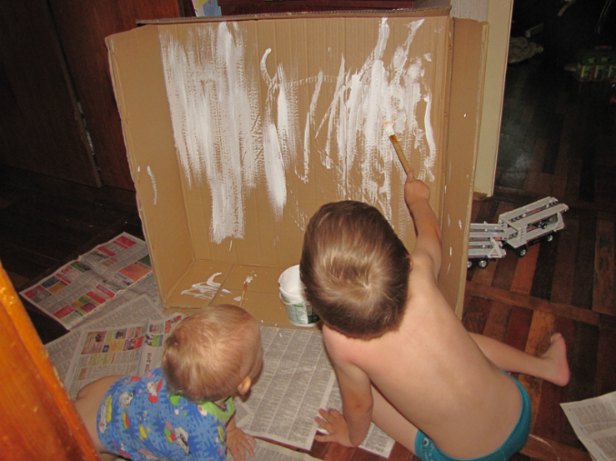 Сначала белянкой все покрасили (краска акриловая для внутренних работ, не пахнет, быстро сохнет..я ее использую для декупажа.