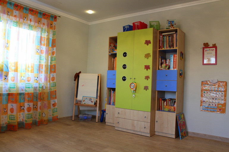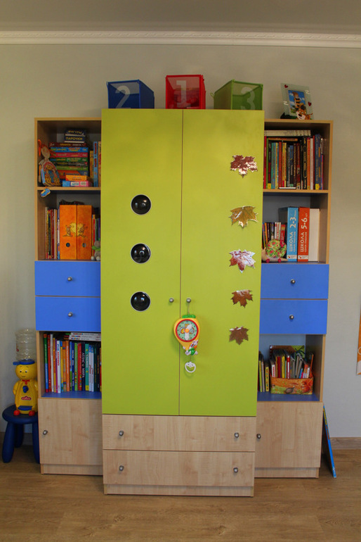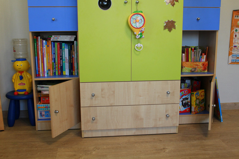 Внизу просто закрытые полки, где у нас коробочные игры, конструкторы, шахматы и пр..