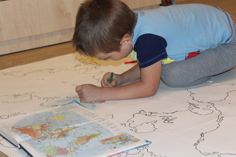 ого, действительно огромная страна — 4 карандаша, ничего себе))) отличное занятие у вас, главное, что вместе, и что всем участвующим интересно!