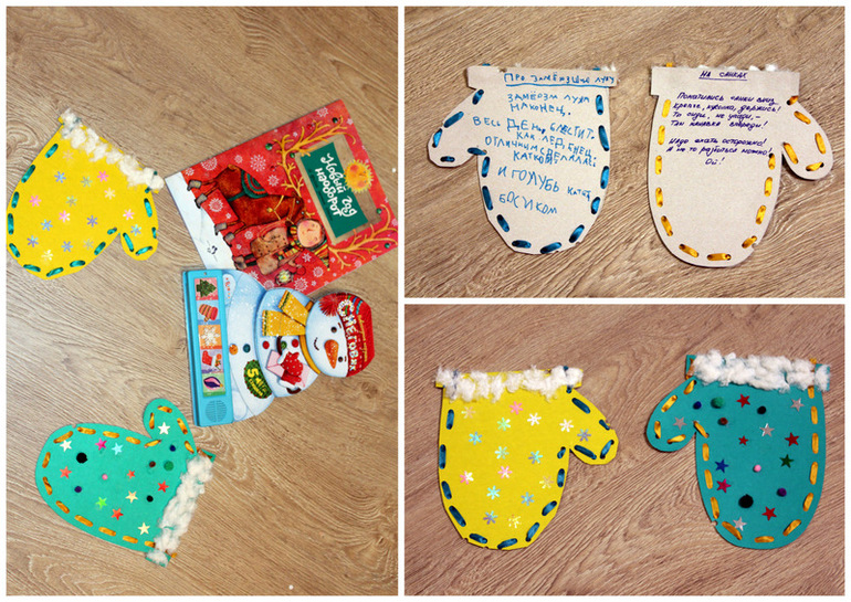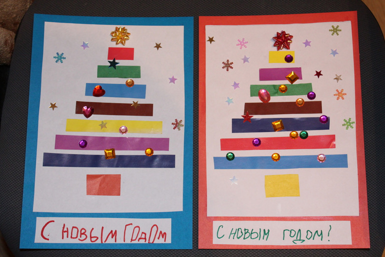делили Матвей и я с Тимом) Сделали надписи и уже, после того, как наклеили, обнаружили, перепутали открытки)))) Елочка Матвея, а подпись наша с Тимом и наоборот)))))