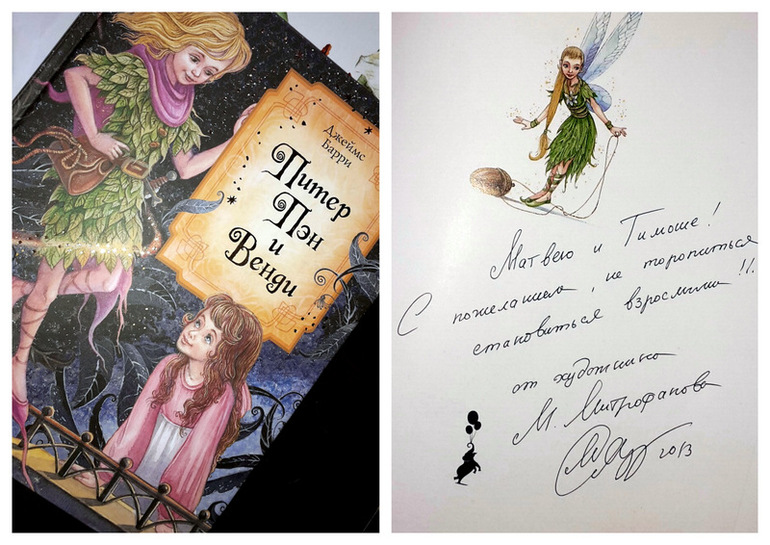 В прошлом году благодаря Надюше у нас появилась замечательная книга про приключения Питера Пэна с автографом художника этой книги М. Миртофанова!