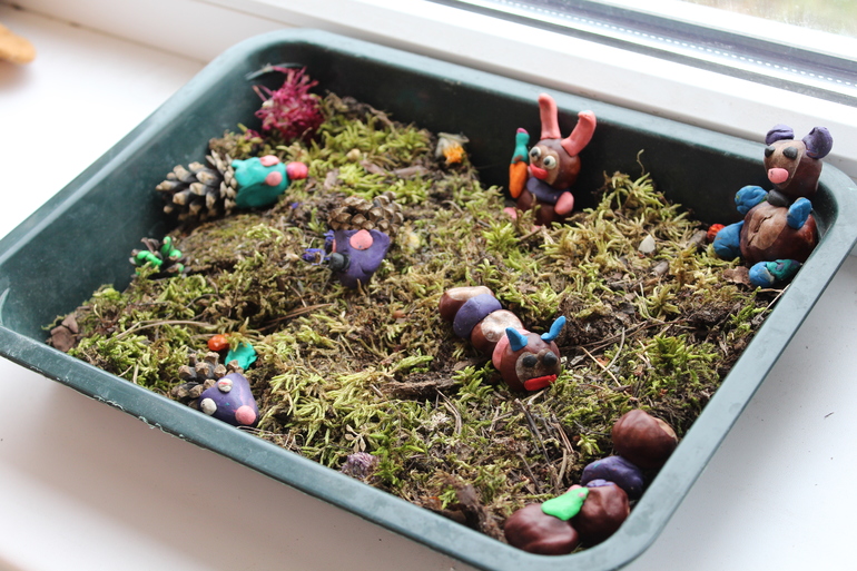 Почему гусеницы, ежики, зайцы и медведи синие-зеленые-розовые? А это пластилин старый у нас в остатках был... жалко было выбрасывать... пустили в дело)))