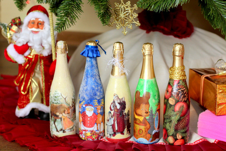Давно я не занималась декупажем. А тут взялась делать новогодние бутылочки и перебрала все свои декупажные снасти. Нашла много заготовок уже загрунтованных! Некоторые лежат уже несколько лет точно! Не дело ж это)