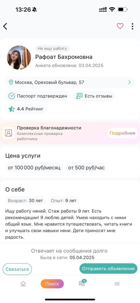 Черный список нянь, Москва Рафоат Алимкулова Бахромовна , 30 лет