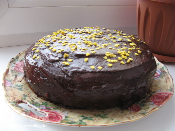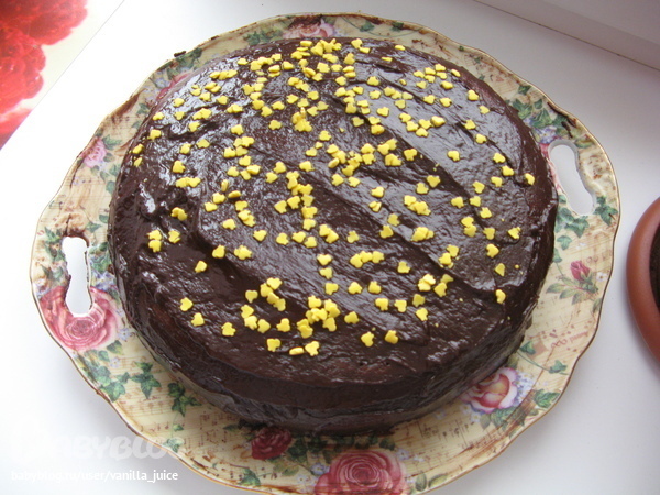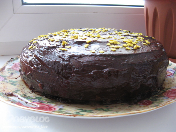Испекла в мультиварке торт "шоколад на кипятке" по рецепту - http://www.babyblog.ru/community/post/cookingbook/849439, но не со сметанным кремом, а с ванильным Ванькиным десертом и шоколадной глазурью.